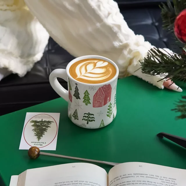 Nothing says โtis the seasonโ like drinking from a beautifully designed Christmas-themed porcelain mug while curled up by the fireplace! This particular one caught my eye because of its unique artwork โ truly reminiscent of a magical wintery night!