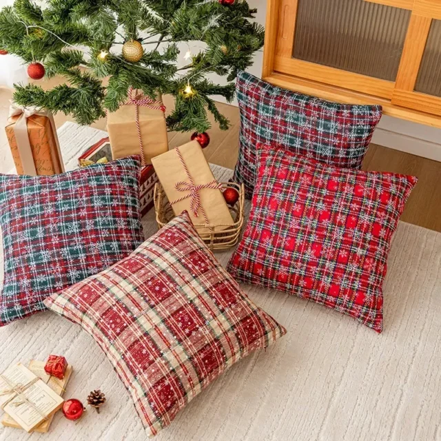 Give your space a warm, festive touch with this elegant Christmas snowflake plaid pillowcase cover. Designed in a rich retro red with a soft knit texture, it instantly adds a cozy holiday feel to your sofa, bed, or favorite reading corner. The timeless snowflake and plaid pattern blends classic Christmas style with modern simplicity, making it a perfect seasonal accent for any room.