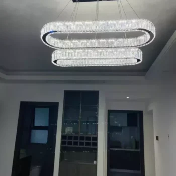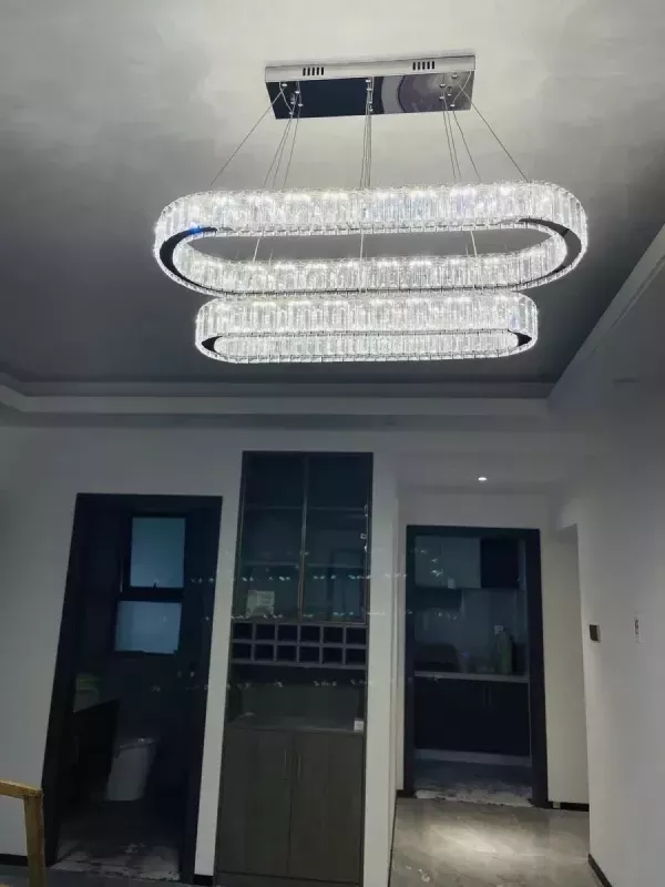 Bring a touch of sophistication to any room with our Contemporary LED Crystal Ceiling Pendant. Designed for modern living, this stylish fixture combines the allure of sparkling crystals with the sleekness of chrome, casting a warm and inviting glow in your dining room, kitchen, or bedroom. Its unique oval ring shape is not just an illumination source, it’s a statement piece that complements your home decor.
