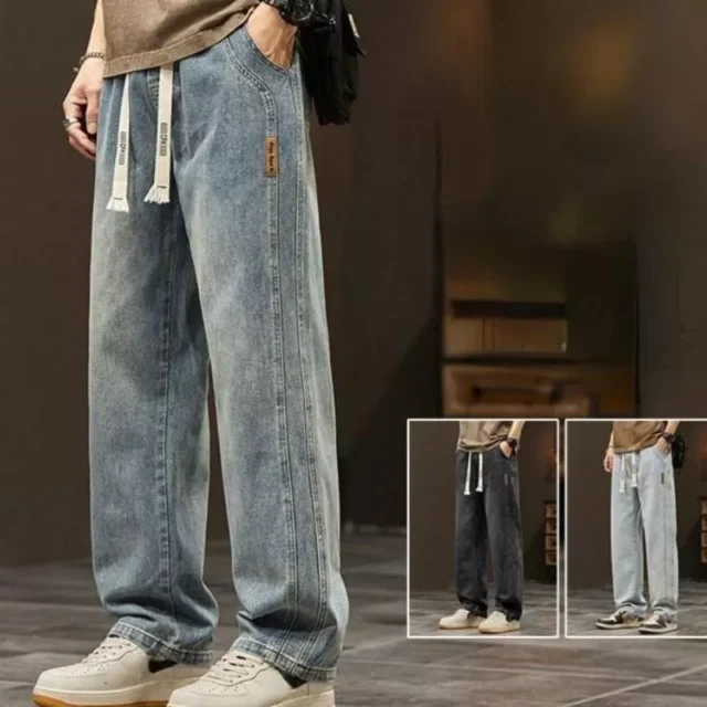 Unveil a blend of comfort and style that carries you through the seasons with our Elastic Waist Men’s Wide-Leg Denim Pants. Specially designed for those who value both looks and ease, these pants serve as an essential wardrobe staple for the fashion-forward and comfort-seeking individual. Whether you’re stepping out for a casual coffee date or navigating the daily hustle, our jeans provide a versatile foundation for your everyday wear.