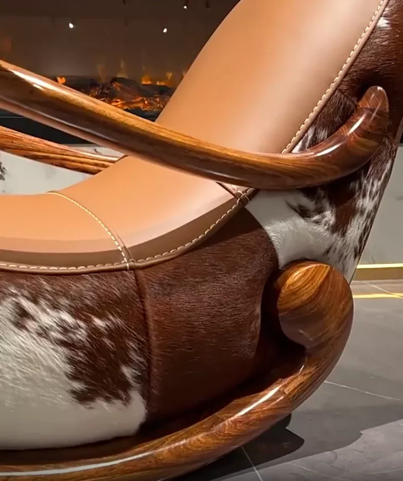 What makes our Ebony Genuine Leather Rocking Chair special? It’s not just furniture; it’s a centerpiece. It symbolizes comfort, quality, and style, all wrapped in one. The rocking feature adds a soothing, rhythmic motion, perfect for calming your mind and body.