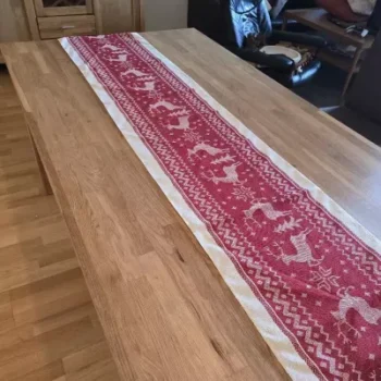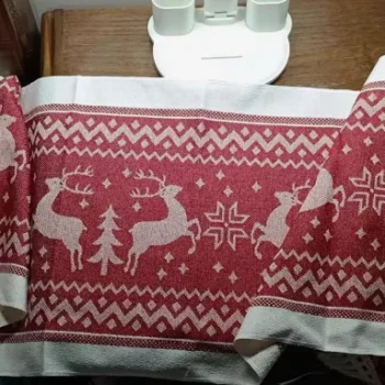 What a delightful table runner! The elk design really adds to the festive spirit. 🎄