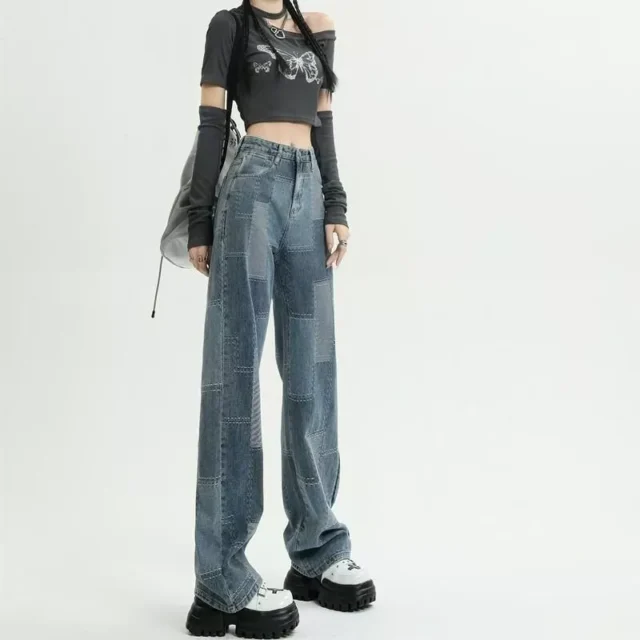 Our wide-leg jeans are versatile enough to be worn throughout the spring and autumn seasons. Whether you’re strolling through the city, attending a class, or going out for a casual brunch, these jeans will be your go-to. Pair them with a cozy sweater and boots for a chic autumn look, or with a light blouse and sneakers for a relaxed spring vibe. The unique plaid pattern and elegant appliques ensure these jeans are not just clothing but a fashion statement.