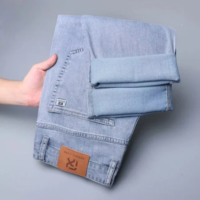 Light Blue Straight-Cut Casual Jeans – Men’s Summer-Ready Lyocell Blend