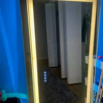 The Lux-Illuminate Mirror isn’t just a functional piece; it’s a statement of elegance and technological innovation. Its RGB backlit feature creates an enchanting atmosphere with a spectrum of colors, perfect for relaxing soaks or energizing mornings. The high Color Rendering Index (CRI) of 90 means colors appear more vibrant and true-to-life, essential for precise makeup application or shaving. With IP56 waterproof rating and CE, FCC, UL certifications, rest assured that safety and quality are never compromised.