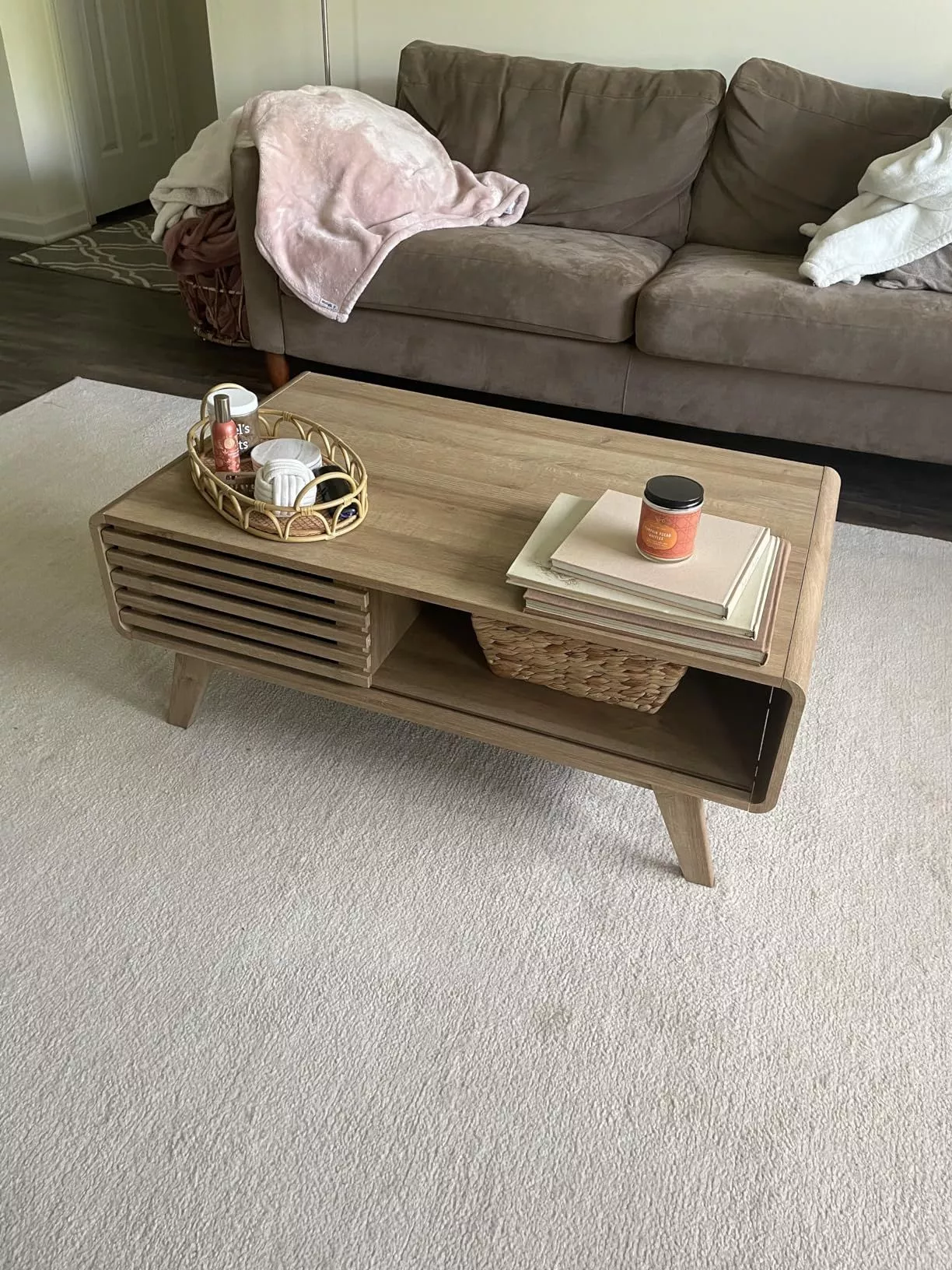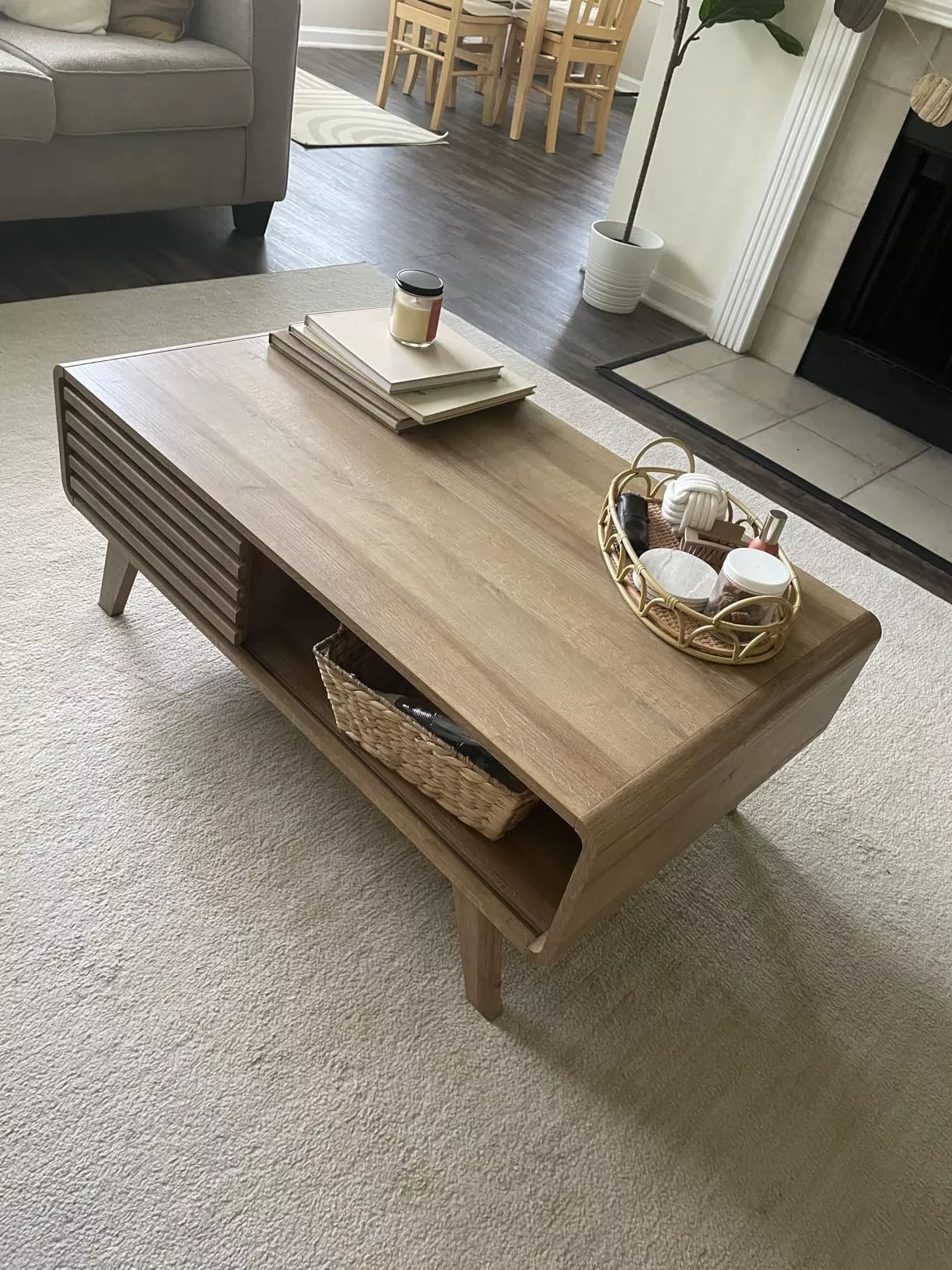 I totally smitten with this coffee table! It's an absolute game changer in my humble abode. What initially caught my eye was its dual storage system. Living in a small apartment, space is always at a premium and clutter just drives me up the wall. This table though? It’s like it cameoping down from the heavens save the day! The way that dual storage works is pure genius - it's practical yet unobtrusive which is exactly what you need when every square inch counts. You can stash anything from remote controls to magazines or even those pesky bills you'd rather forget about! And let's not forget about those unexpected guests who pop by; quick clean-up has never been easier. And then there's the style factor! This isn’t your run-of-the-mill piece of furniture we’re talking about here folks; this baby oozes class and sophistication without trying too hard. The design effortlessly fits into my existing decor while adding its own unique charm to the room. In short? My love for this coffee table knows no bounds! From saving me precious space with its clever dual storage system to standing strong through all sorts of use while looking absolutely fabulous doing so – what more could one ask for? If you're on the hunt for something functional yet stylish that adds a touch of elegance to your living area, look no further than this beauty right here!