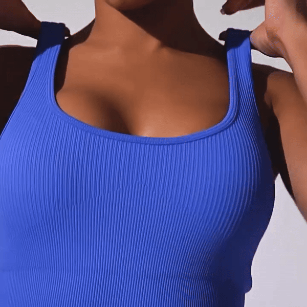 Our Seamless Yoga Romper is not just for yoga. It’s an excellent choice for various activities, including running, pilates, or even casual outings. The stylish ribbed design and integrated padded sports bra offer both support and a trendy look, making it a versatile addition to your wardrobe.